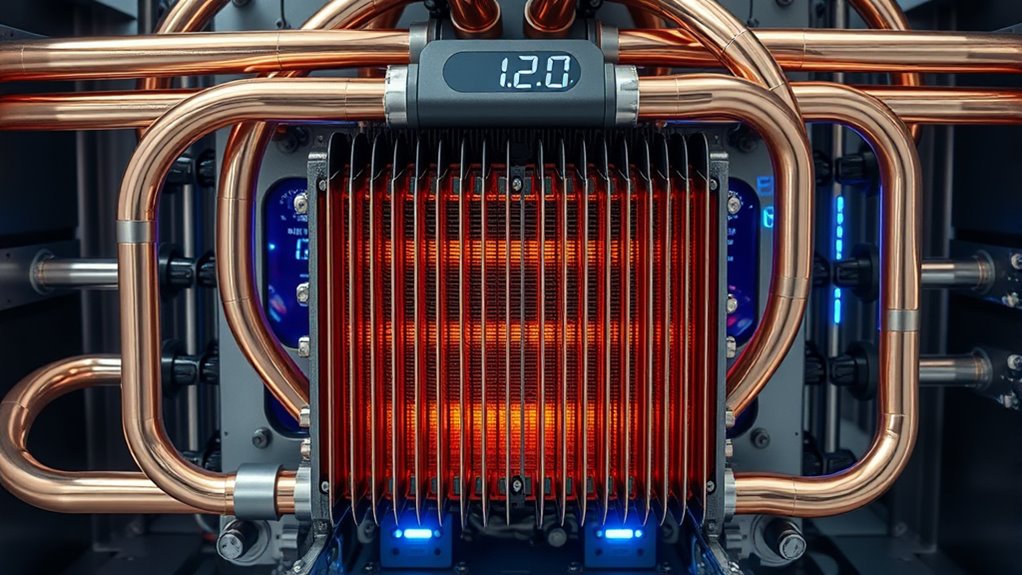 Have you ever wondered how electronic devices and engines stay cool during operation? The answer lies in the cooling systems that prevent overheating and maintain ideal performance. One of the key components in many cooling systems is the radiator, which is designed to dissipate heat efficiently. Radiator design plays a pivotal role in how effectively heat is transferred from the coolant to the surrounding air. Modern radiators often feature a network of thin metal fins and tubes that maximize surface area, allowing heat to escape quickly. The arrangement of these fins and the material used, typically aluminum or copper, greatly influences cooling performance. A well-designed radiator ensures that the coolant flows smoothly through its channels, avoiding hotspots and promoting even heat exchange. Additionally, coolant flow dynamics influence how uniformly heat is distributed and removed from the system.
