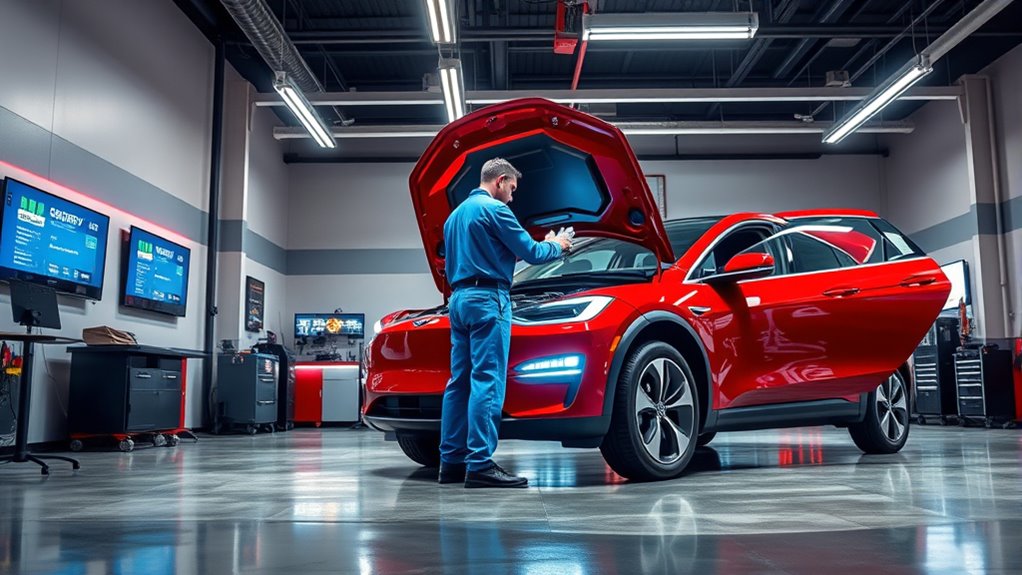 Bis 2025 müssen Sie fortschrittliche EV-Batterietechnologien beherrschen, spezialisierte Diagnosetools verwenden und strenge Sicherheitsprotokolle einhalten, um wettbewerbsfähig zu bleiben. Elektrofahrzeuge entwickeln sich rasch, mit modularen Batterien und ausgefeilten Managementsystemen. Es ist unerlässlich, stets über neue Chemien, Sicherheitsverfahren und Reparaturtechniken auf dem Laufenden zu bleiben. Das Verständnis von Dateninterpretation und Hochspannungs-Handhabung wird Ihnen helfen, effizient und sicher zu arbeiten. Bleiben Sie neugierig und lernbereit — es gibt noch viel mehr, um den Erfolg Ihrer Werkstatt in diesem sich wandelnden Umfeld zu sichern.