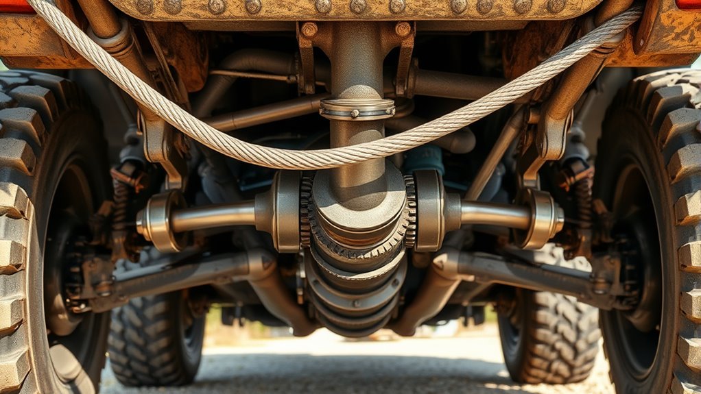 Towing also influences how your drivetrain components distribute power. When pulling a heavy load, your vehicle’s transmission must work harder, which can lead to higher stress on the gears and bearings. If your gear ratios aren’t suited for towing, you may notice sluggish acceleration or increased engine strain. Additionally, improper or neglected drivetrain lubrication can cause gears to seize or wear unevenly, compromising overall performance. To mitigate these issues, ensure your drivetrain fluid levels are adequate and that the fluids are fresh. Using the recommended type and viscosity of lubricant helps maintain ideal protection and performance, especially under the added pressure of towing.