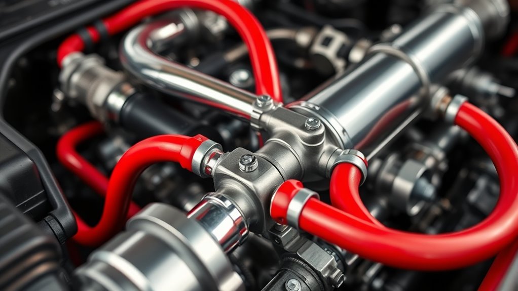Secondary air injection can slightly affect your fuel efficiency, but it mainly helps reduce emissions. When the system works properly, it guarantees cleaner air intake and smoother engine operation, which can improve overall fuel economy. However, if the system has issues or leaks, your engine might work harder, decreasing fuel efficiency. Regular maintenance keeps the system functioning correctly, supporting both air intake quality and ideal fuel consumption.