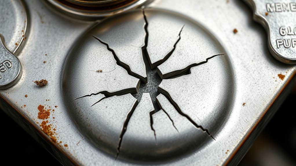Cracks in your suspension mounting points can severely weaken your vehicle’s safety and handling. If you notice unusual noises, vibrations, or handling issues, it’s essential to inspect these areas promptly. Ignoring cracks can lead to suspension failure or steering problems, risking your safety. Repair options include welding for minor cracks or replacing damaged components for extensive damage. To learn more about diagnosing and fixing suspension mounting cracks effectively, keep exploring your options.