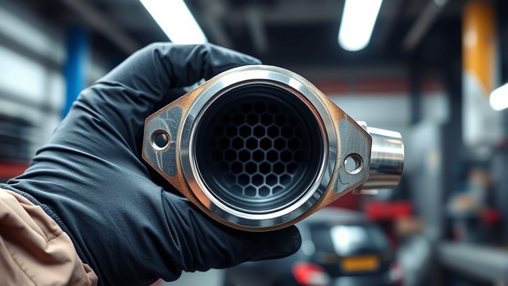 Interpreting these codes allows you to understand whether the catalytic converter is failing or if there’s an issue with the sensors themselves. A consistent pattern of codes related to sensor performance suggests that your converter isn’t meeting emission standards. Regularly checking these sensor readings helps you catch problems early, saving you money and preventing excessive emissions. Keep in mind that sensor diagnostics aren’t just about reading trouble codes; they also involve analyzing live data from the sensors, which can be done with specialized tools. Additionally, understanding AI vulnerabilities in sensor data interpretation can help improve diagnostic accuracy and vehicle safety. By doing so, you gain a clearer picture of your converter’s health and guarantee it’s doing its job to keep your vehicle compliant with emission standards.