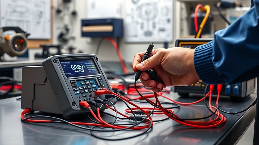 Temperature changes impact your charging system tests by causing thermal expansion, which can alter electrical connections, and creating voltage fluctuations, leading to inaccurate results. When it’s hot, components expand, affecting contact points, while cold causes contraction, possibly increasing resistance. To guarantee accuracy, you should perform tests in stable temperature conditions or account for these variations, recognizing that temperature fluctuations can mislead your diagnosis and affect the reliability of your testing outcomes.