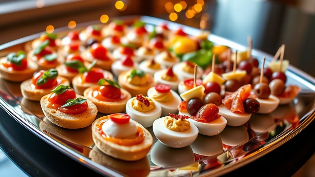 You can make quick ingredient swaps to suit your taste and dietary needs. For example, swap sour cream for Greek yogurt for a tangy flavor enhancement, or use gluten-free crackers instead of regular ones. To boost flavor, add fresh herbs or a splash of lemon juice. These simple ingredient swaps not only save time but also elevate your appetizers, ensuring they’re delicious and suitable for everyone at your celebration.