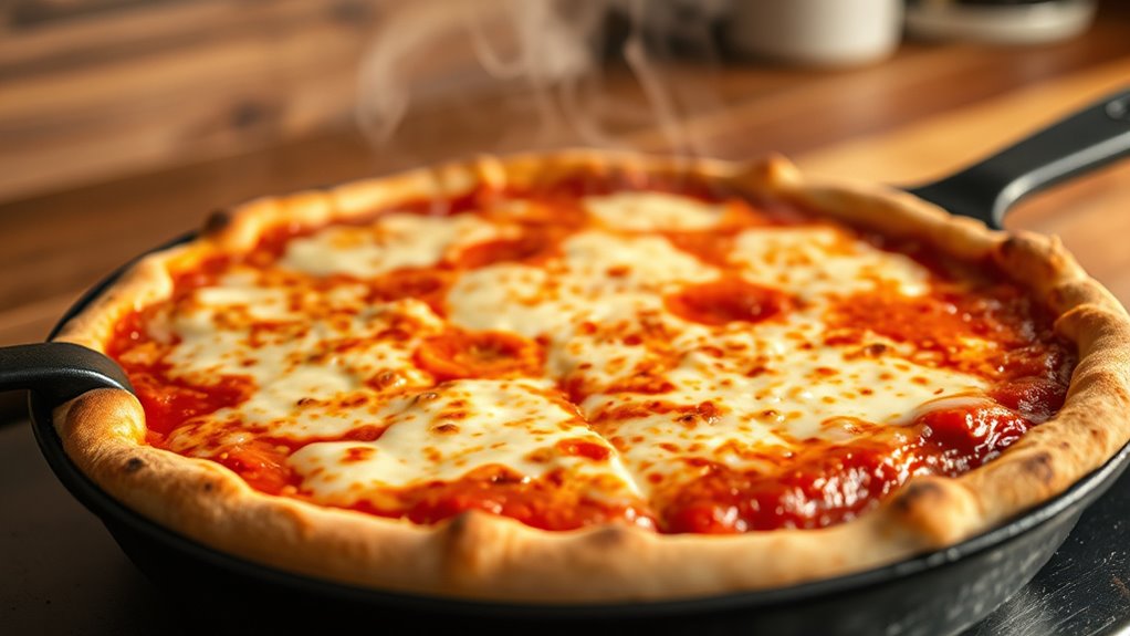 You should clean your stone, steel, and cast iron pans with a brush or scraper, avoiding soap on stones to preserve seasoning. After cleaning, dry them thoroughly and apply a light coating of oil to maintain seasoning techniques. Store your pans in a dry, well-ventilated space, stacking with paper towels if needed. Proper maintenance guarantees even heating and prevents rust, keeping your pans ready for perfect homemade pizza every time.