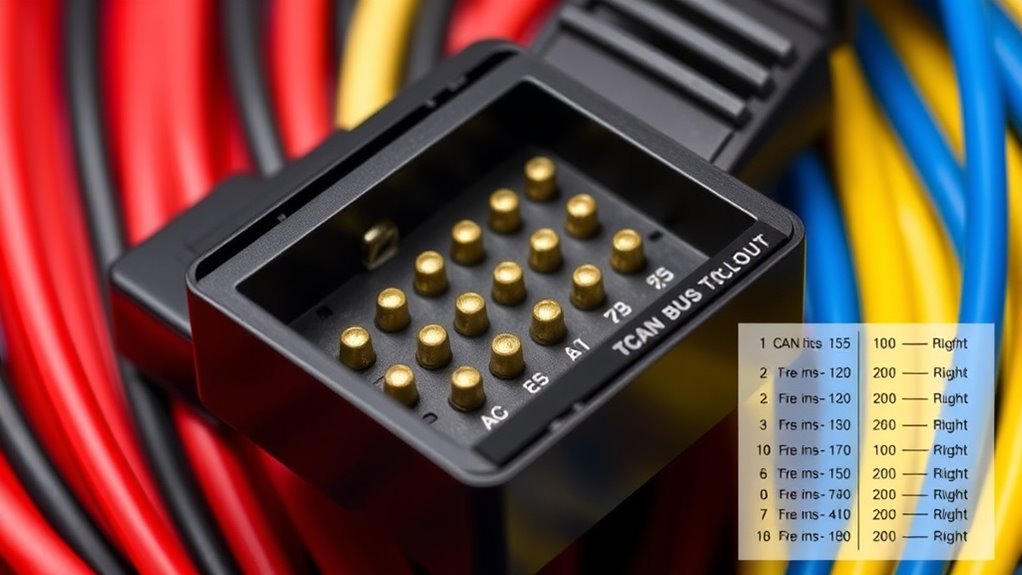 Understanding CAN bus topology and pinouts is key to setting up a reliable network. The classic bus topology connects devices along a single line, minimizing wiring and ensuring signal integrity. Proper pinouts, especially for CAN High and CAN Low, are vital for correct wiring and avoiding communication issues. At network ends, termination resistors prevent signal reflections. If you want to learn how to optimize your CAN network for stability and performance, keep exploring these essential details.
