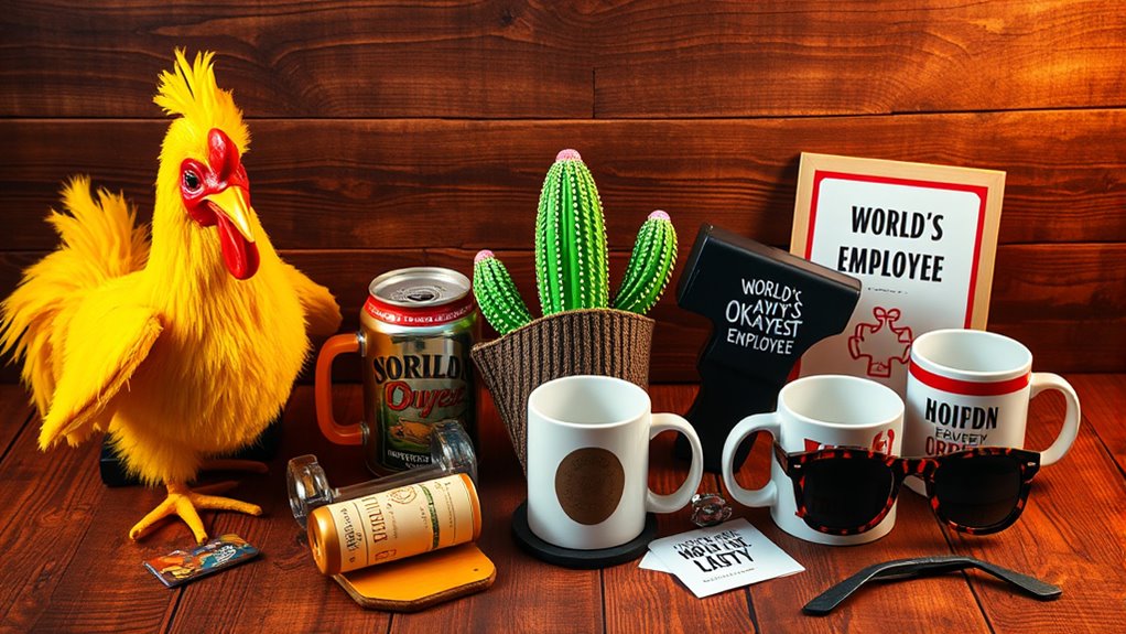 Have you ever noticed how a truly unique gag gift instantly grabs attention and sparks conversation? That’s the power of the novelty factor. These gifts often feature humorous or unexpected designs that make them stand out in a crowd. Clever puns, funny sayings, and quirky themes boost their appeal and make them memorable. The originality of such items not only makes them more fun but also turns them into instant conversation starters at parties or gatherings. Plus, their distinctive packaging or presentation emphasizes their unconventional vibe, adding to the humor. This originality helps set them apart from more common gifts, making them perfect surprises that get everyone laughing. When choosing gag gifts, prioritizing their unique or novelty appeal guarantees a fun, memorable experience for everyone involved.