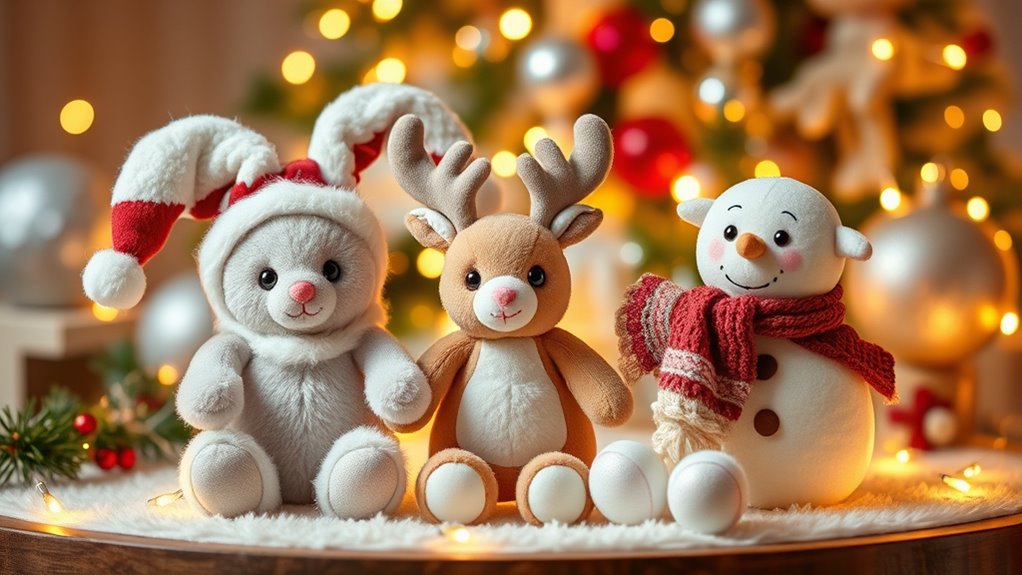 Choosing toys from the Jellycat Christmas collection in 2025 means considering their material resilience to guarantee they last through lots of play. These toys are crafted with high-quality plush materials that provide both durability and long-lasting softness, so they remain cuddly over time. The multi-layer construction and careful stitching make them robust, reducing the risk of tears or fraying even with frequent handling. Premium-grade fabrics are specially sourced to enhance resilience against rough play, while any hard surfaces or accents are designed to withstand bending and chewing by young children. To keep these toys looking their best, regular spot cleaning with warm water is recommended, helping maintain their appearance and integrity for many holiday seasons to come.