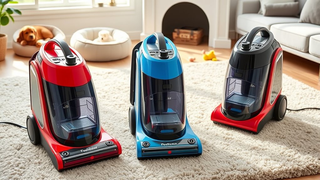 Think of these cleaners as your trusty sidekicks, ready to tackle any pet stain that crosses your path. Yes, they handle different types of pet stains effectively, from muddy paw prints to stubborn vomit marks. Modern models come with specialized attachments and solutions designed for various messes, making cleanup quick and efficient. With the right cleaner, you’ll be able to restore your carpet’s beauty no matter what your furry friend leaves behind.