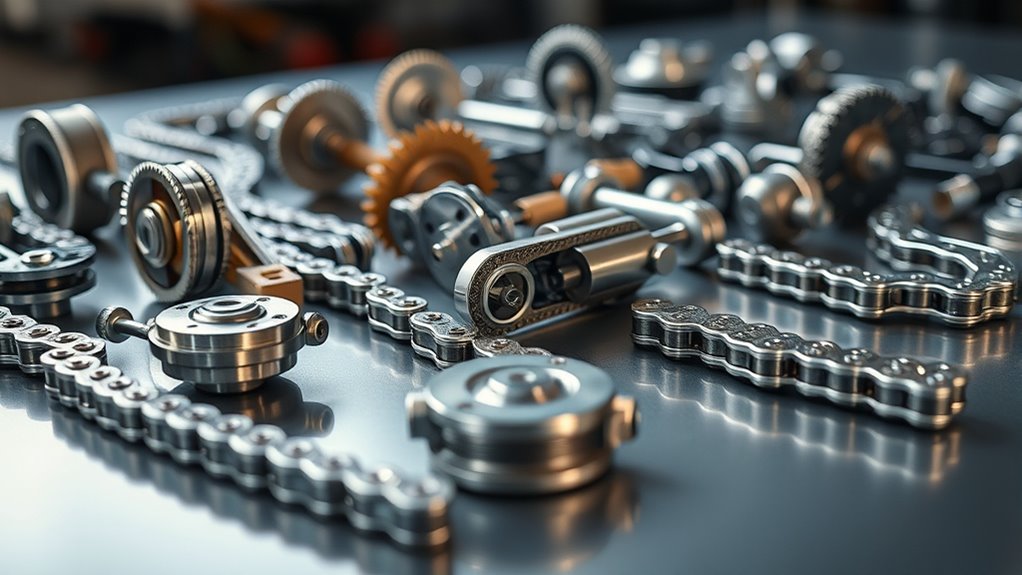 Durability and longevity are critical factors when selecting a timing-chain kit because they directly impact your engine’s reliability and maintenance costs. High-quality kits made from hardened steel or wear-resistant alloys can withstand engine stress over time, ensuring consistent performance. Proper installation, correct tensioner operation, and adhering to manufacturer maintenance intervals are essential for maximizing lifespan. Kits with reinforced guides, tensioners, and sprockets tend to last longer, reducing the need for frequent replacements. Regular inspections can catch early signs of wear, preventing costly engine failure. Choosing a kit with proven durability ratings and positive user reviews gives you confidence in its longevity. Investing in a durable timing chain ultimately safeguards your engine’s health and saves you money in the long run.